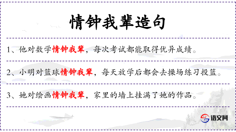 - 情钟:表示对某事物有深厚的喜爱或情感。