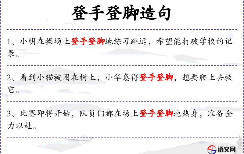 1. 【登手登脚】 用力地伸缩蹬动手脚。