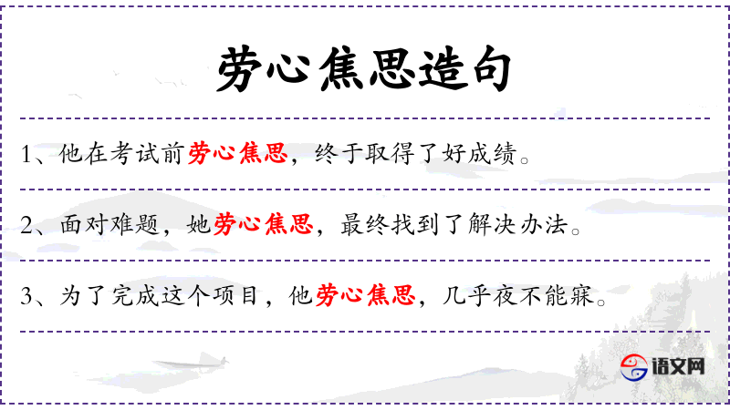 - 劳心焦思:这个成语体现了**文化中对勤奋和智慧的重视。