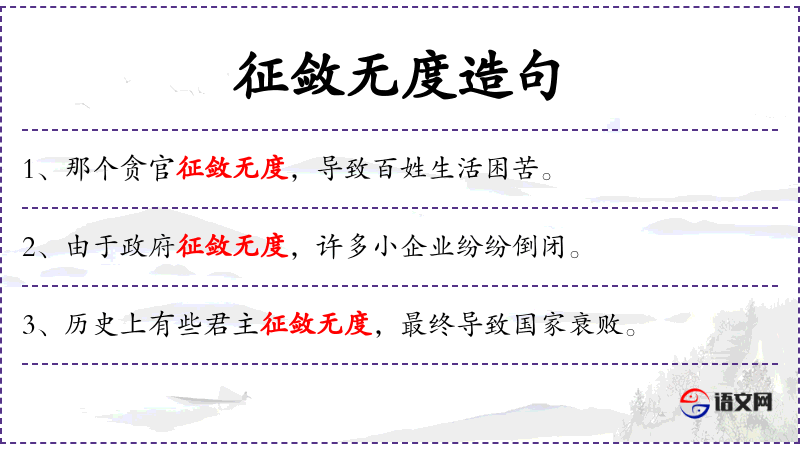 - 征敛:指政府征收税赋或其他财物,此处“无度”表示过度或不合理。