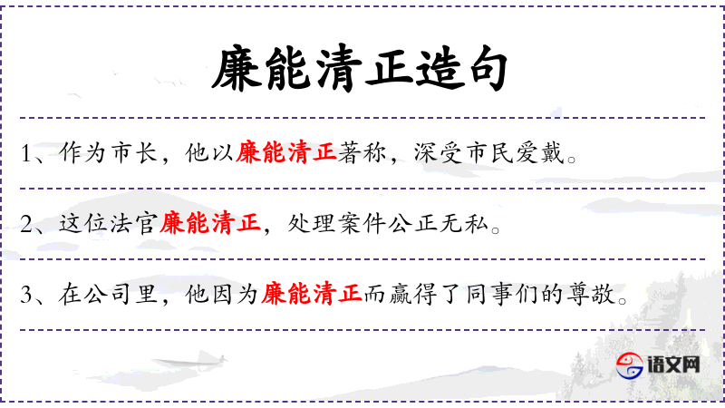 - 定语:廉能清正