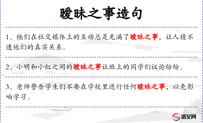 4. 【暧昧之事】 - 行为不光明,内有不可告人的隐情。也指男女互相爱悦可能有的私事。