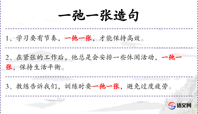 - 成语“一弛一张”:源自**古代的军事策略,后引申为做事要有节奏,有张有弛。