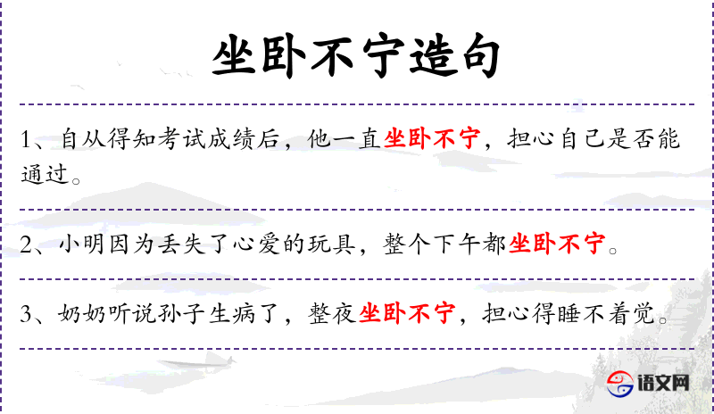 - 坐卧不宁:成语,形容心情烦躁,无法安静。
