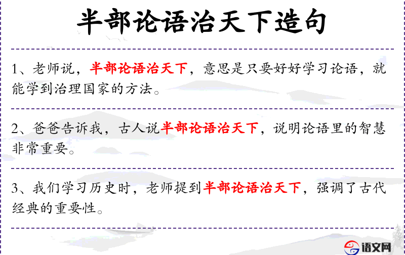 - 半部论语治天下:成语,意为通过学*《论语》的一部分就能治理好国家。