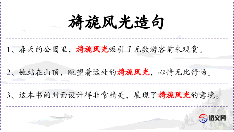 - 宾语:旖旎风光