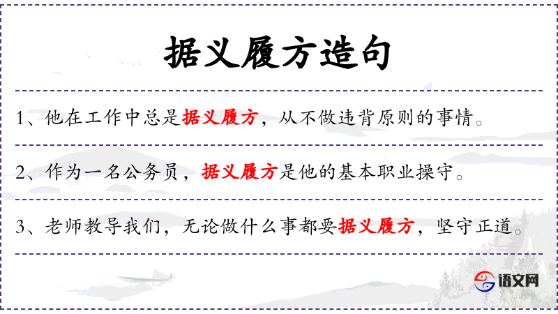 - 据义履方:这个成语强调了按照正义和原则行事的重要性,是**传统文化中的价值观。