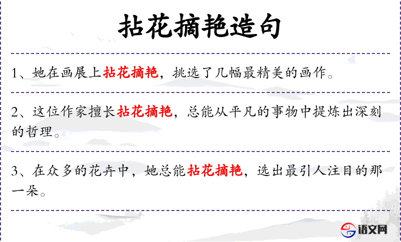 - 拈花摘艳:这个成语源自**故事,比喻从细微之处领悟大道理。