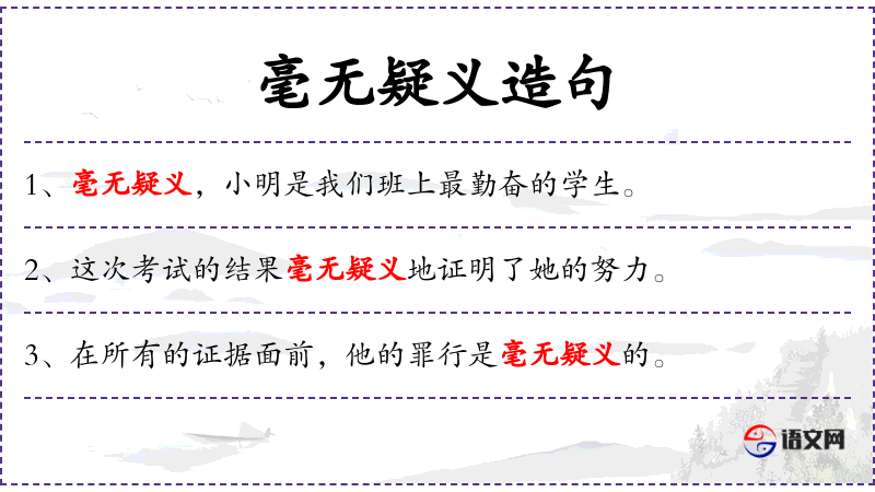 1. 【毫无疑义】 - 疑义:可疑之理。一点也没有可以怀疑的地方。表示完全明确肯定。