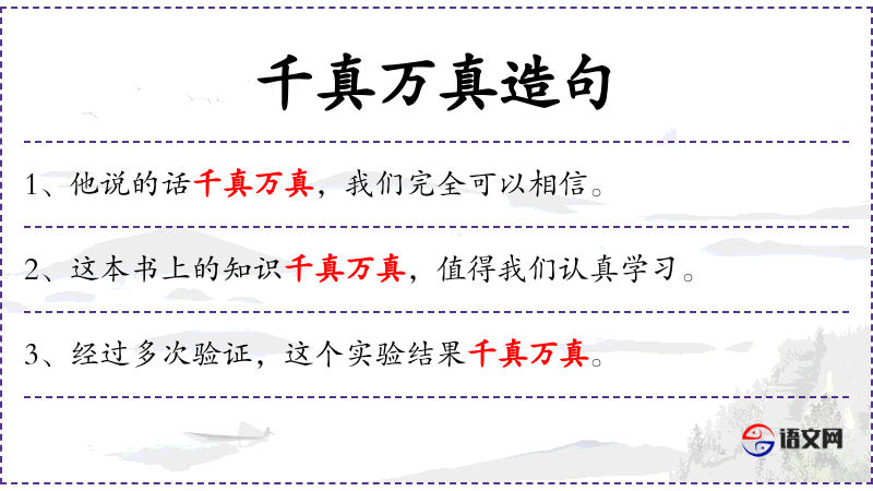 1. 【千真万真】 形容情况非常确实。