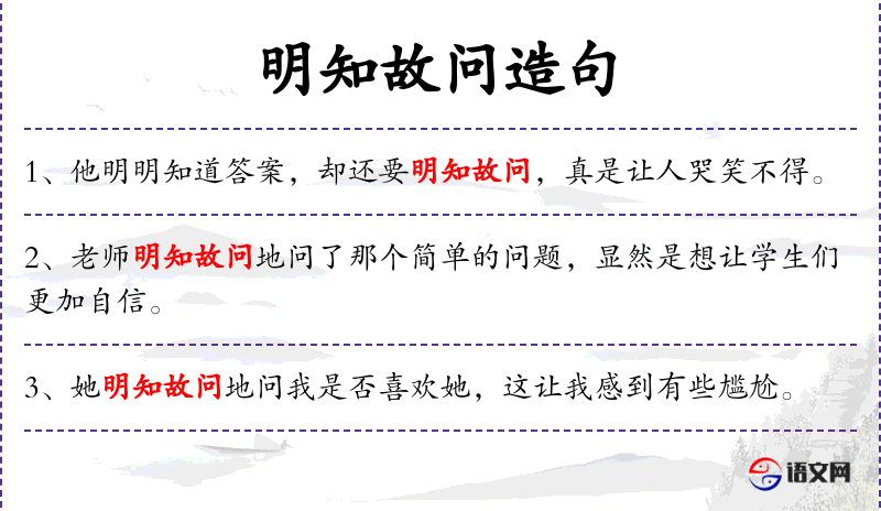 - 成语:明知故问是一个常用的成语,反映了汉语中对于直接与间接交流的微妙处理。