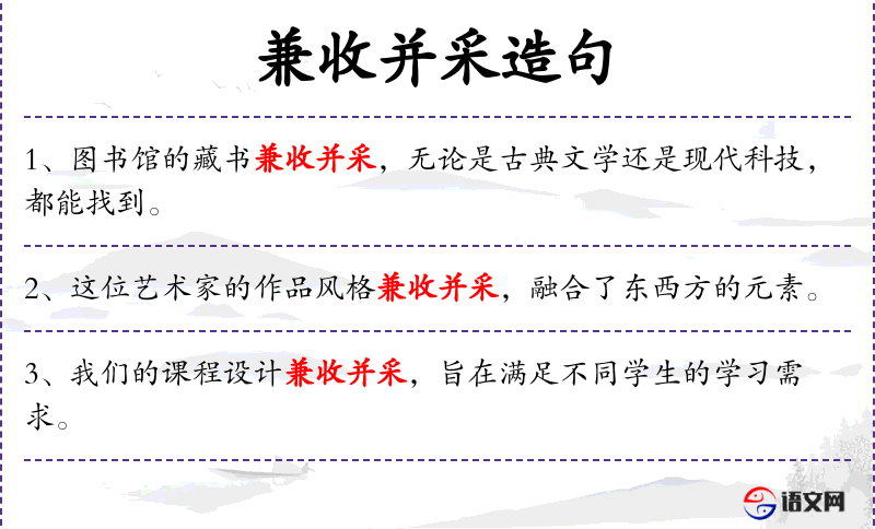 在翻译中,“兼收并采”可以翻译为“inclusive”(英文)、“兼ね備えている”(日文)或“umfassend”(德文),这些词汇都传达了同时包含多种元素的意思。