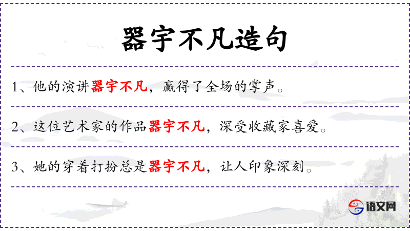- 器宇不凡:这个成语源自**传统文化,用来形容人的气度或作品的风格非常独特。