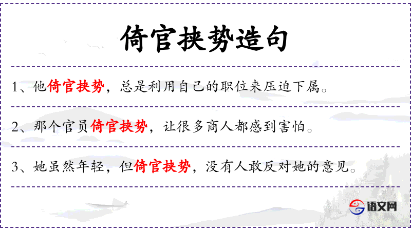 - 倚官挟势:指利用自己的官职或权力来施加压力或影响。