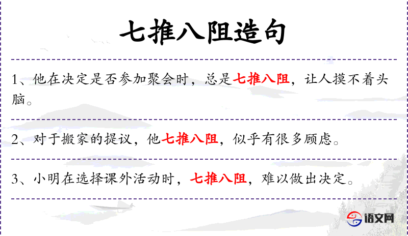 - 成语典故:“七推八阻”是一个形象的成语,用来形容人的犹豫不决。
