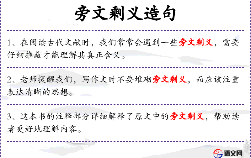 - 旁文剩义:指文章中多余的、不必要的内容或意义。