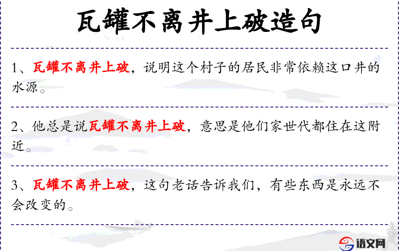 6. 【瓦罐不离井上破】 汲水的瓦罐免不了在井口打破。比喻担着风险干事难免会失手。