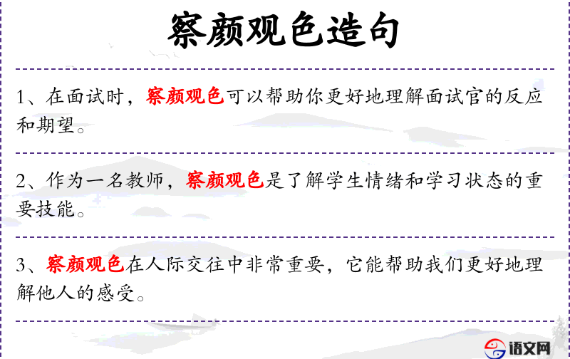 - 成语/典故:“察言观色”是一个成语,源自《论语》,意为通过观察他人的言行来了解其内心。