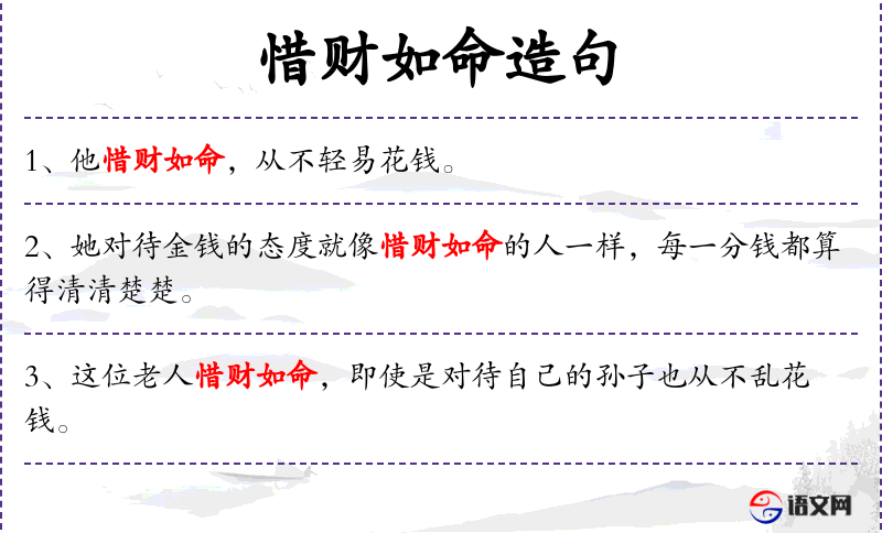 - 惜财如命:形容非常珍惜钱财,像珍惜生命一样。