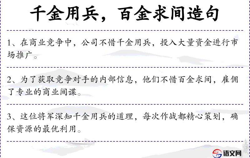 - 在古代战争的背景下,百金求间被广泛应用,旨在通过收买敌方人员来获取重要情报。