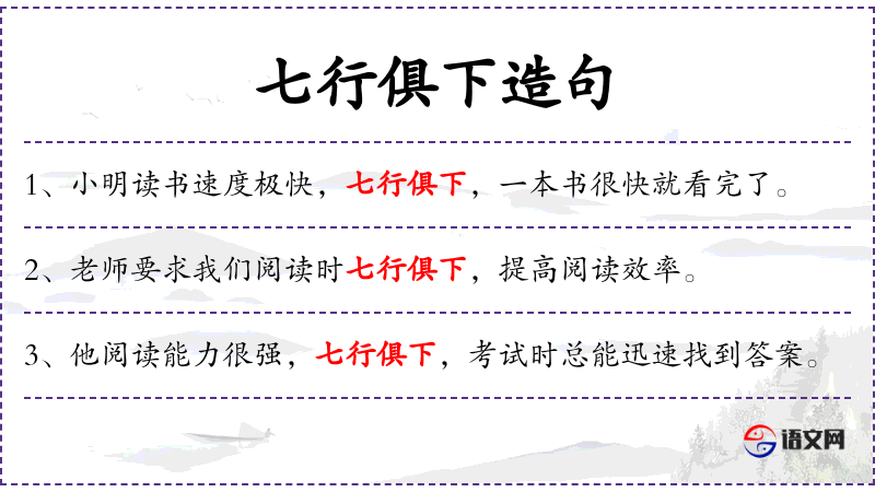 - “七行俱下地”这个表达可能带有夸张的语气,用于强调学*效率之高。