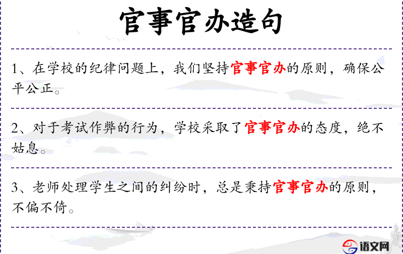 句子:“对于违反校规的学生,老师会官事官办,给予相应的处罚。”