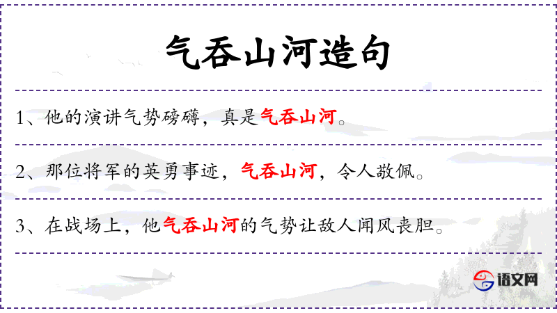 2. 【气吞山河】 - 气势可以吞没山河。形容气魄很大。