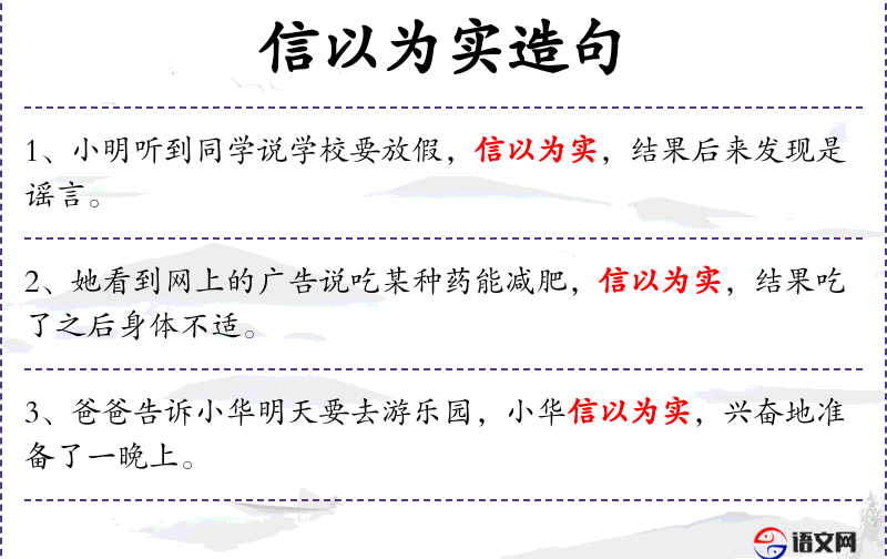 1. 【信以为实】 信:相信。指把虚无的当作真实存在的