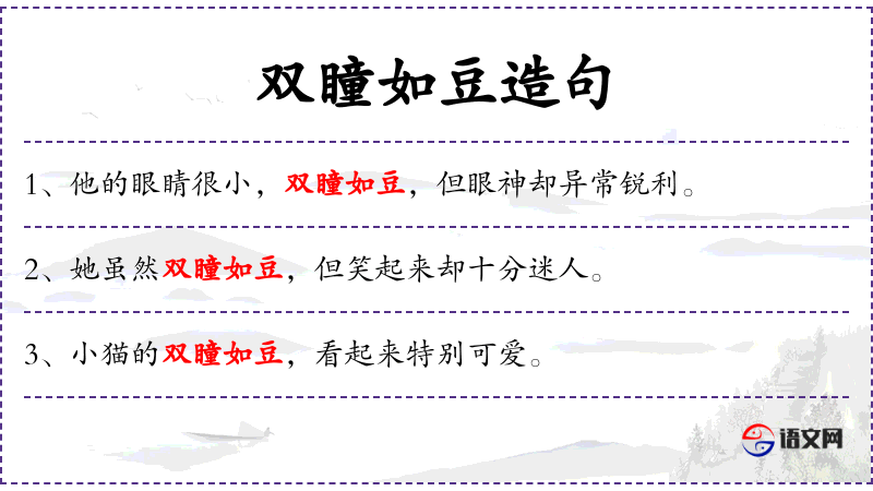 - 宾语:无直接宾语,但“双瞳如豆”中的“双瞳”可以视为间接宾语。