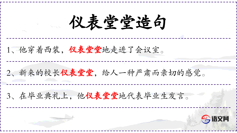 - 仪表堂堂:形容人的外表庄重、有威严。