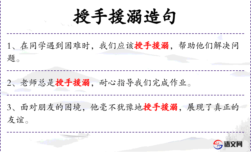 句子:“老师总是授手援溺,耐心指导我们完成作业。”