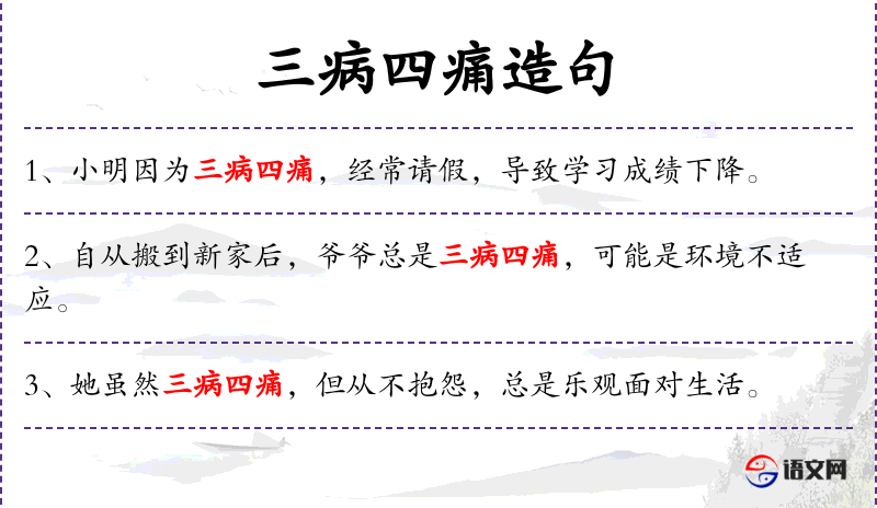 奶奶年纪大了,三病四痛是常有的事,我们要多关心她。