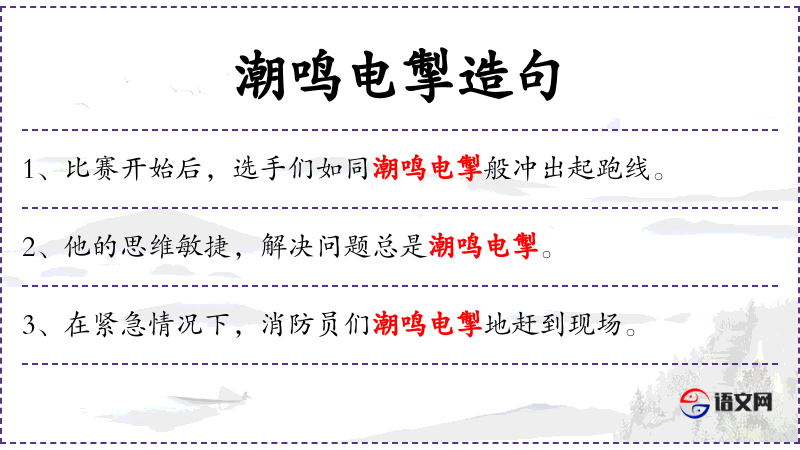 4. 【潮鸣电掣】 - 极言气势大、速度炔。