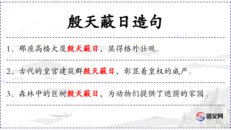 3. 【殷天蔽日】 染红了天,遮住了太阳。形容仪从之盛。