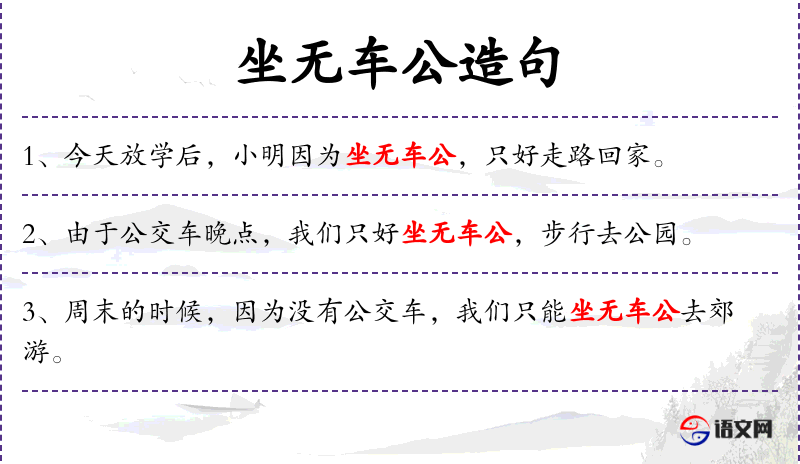 句子:“由于公交车晚点,我们只好坐无车公,步行去公园。”
