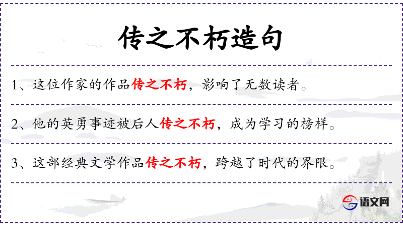 - 传之不朽:意味着作品具有持久的价值和影响力,不会随时间流逝而消失。