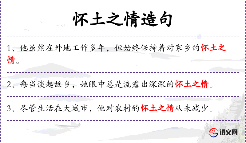句子:“[作家笔下的故乡,充满了对那片土地的怀土之情。]”