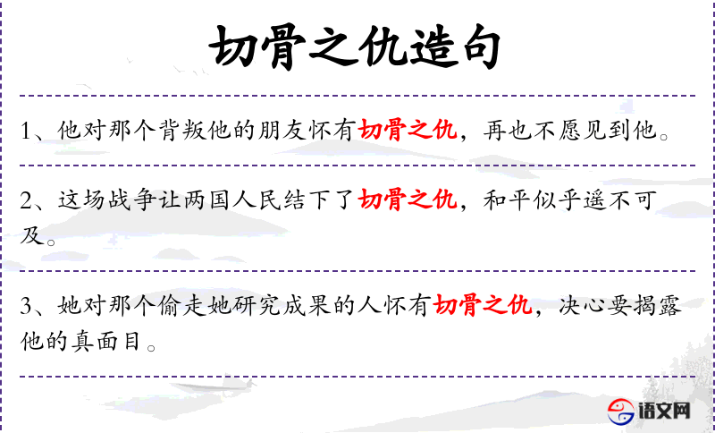 - 宾语:切骨之仇、他(指背叛他的朋友)
