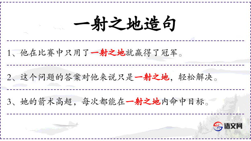 - 只用了一射之地:这一表达较为特殊,通常指“只用了一次射击的机会”,意味着非常高效或技艺高超。