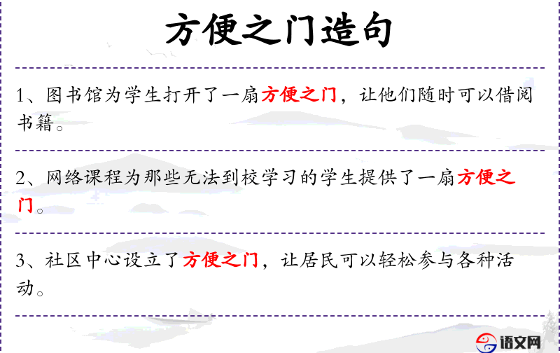 - 宾语:方便之门