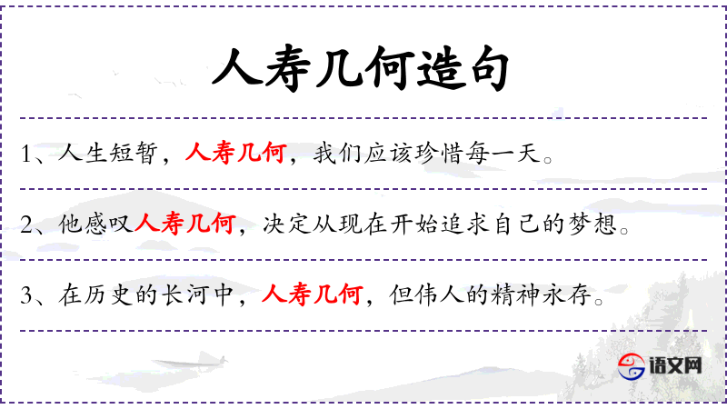 - 人寿几何:成语,意为人的寿命有限,引申为人生短暂。