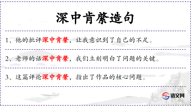 4. 【深中肯綮】 - 比喻分析深刻,能击中要害,或能说到点子上。