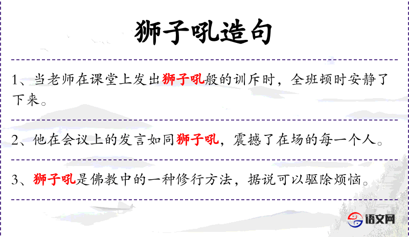 6. 【狮子吼】 佛教徒比喻佛祖讲经,如雷震天地。