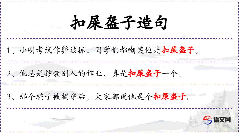 - 同学们嘲笑小明,因为他考试作弊被抓,称他为扣屎盔子。