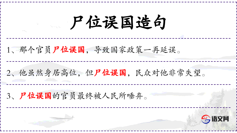 - 尸位误国:这个成语源自**古代,用来批评那些占据高位却不尽职的官员。