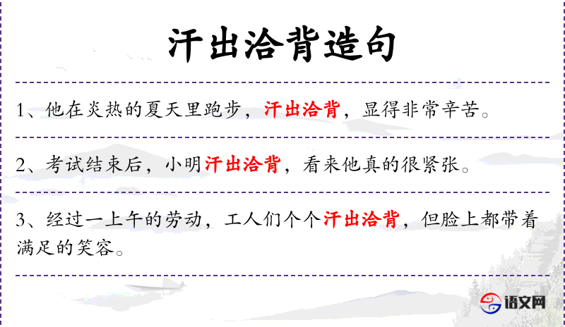 6. 【汗出洽背】 - 形容非常恐惧或非常害怕。同“汗流浃背”。