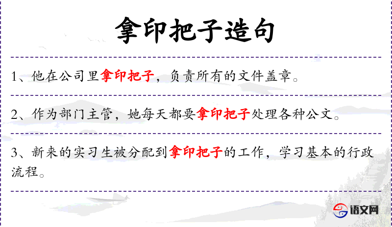 - 拿印把子:指使用印章,通常用于正式文件的盖章。