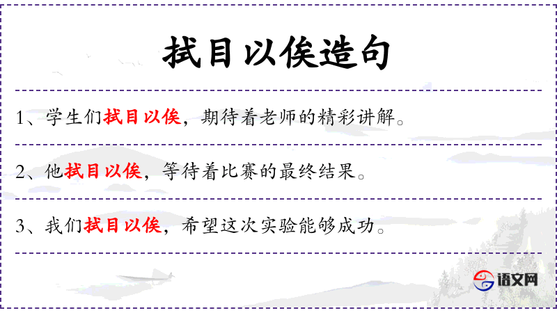 句子:“全班同学拭目以俟,准备迎接新学期的挑战。”