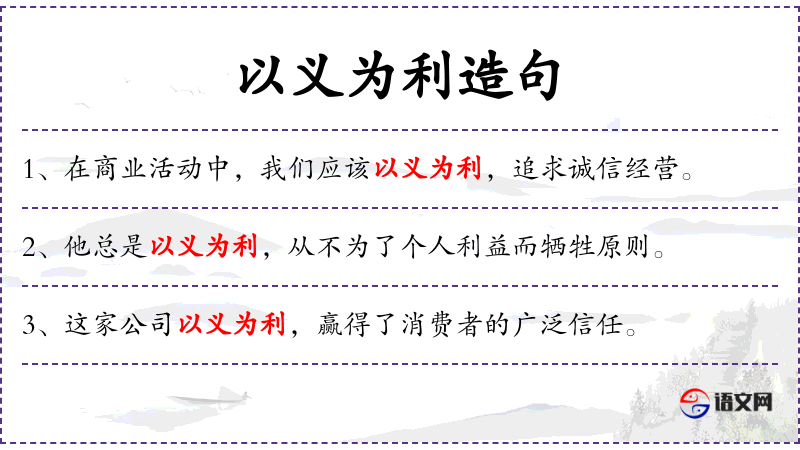 - “以义为利”是**传统文化中的价值观,强调道德和原则的重要性。