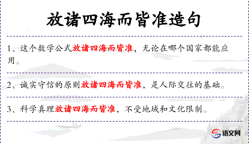 - 放诸四海而皆准:比喻普遍适用,无论在哪里都适用。